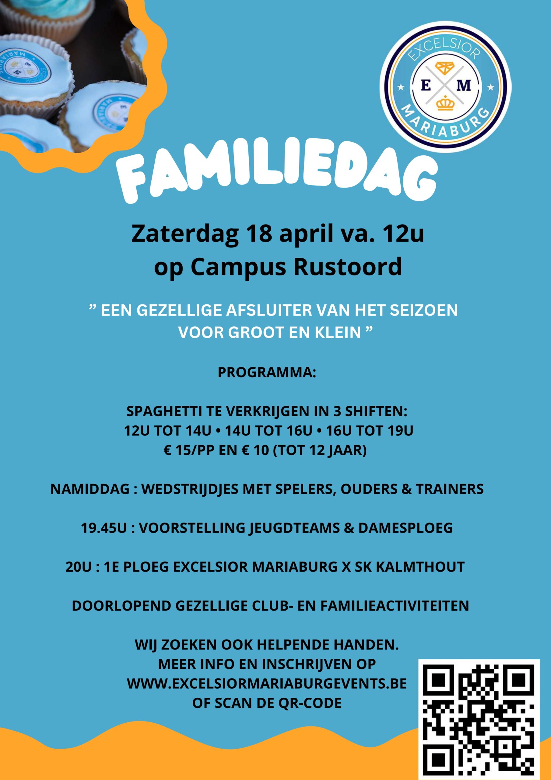 Het wordt een dag vol sfeer, lekker eten, leuke activiteiten, en als afsluiter de laatste thuiswedstrijd van onze 1e ploeg tegen SK Kalmthout.